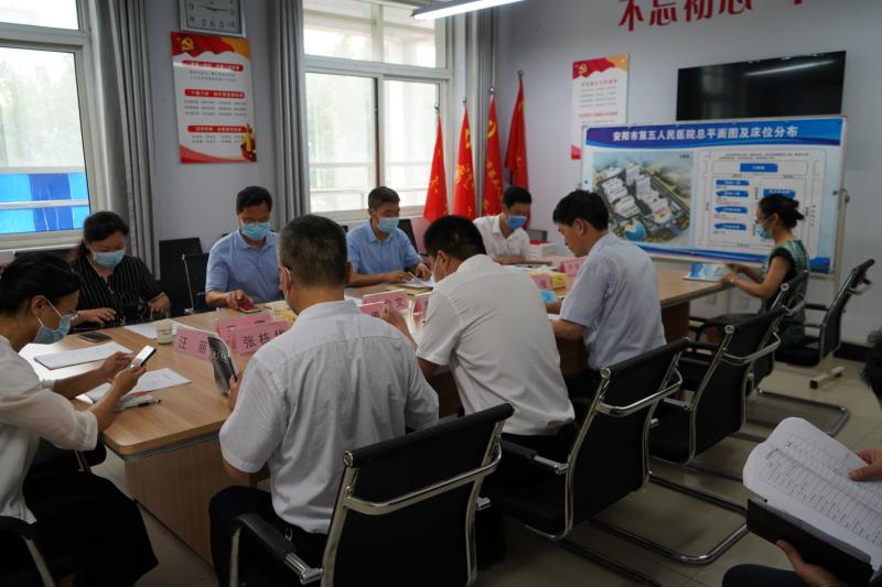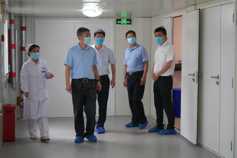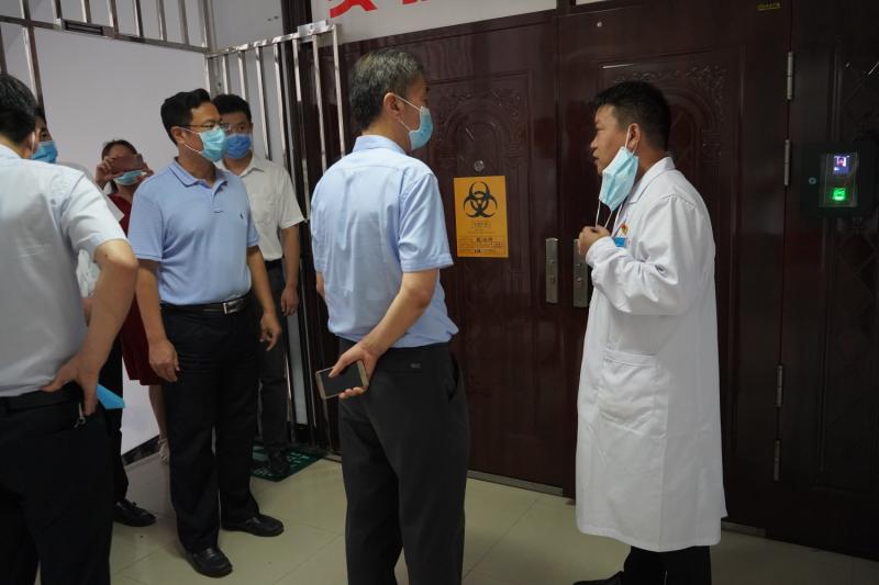 7月31日上午,市卫健委党组书记、主任王永斌莅临来我院调研指导工作。委领导张金文、卢长江、王霞,我院党委书记李永红、院长张勇等领导班子成员参加调研。王永斌主任先后实地考察医院预检分诊、新建隔离病房楼、防疫物资储备仓库、PCR实验室等地。之后,在医院召开座谈会听取党委书记李永红、院长张勇和院领导武俊、张栋华、李娟工作汇报,与部分科室负责人进行座谈交流。