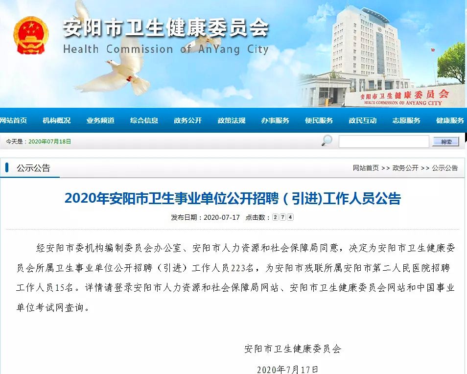 (一)发布招聘公告7月17日,在安阳日报、中国事业单位考试网、安阳市人力资源和社会保障局网站、安阳市卫生健康委员会网站、丁香园人才网上发布招聘公告。