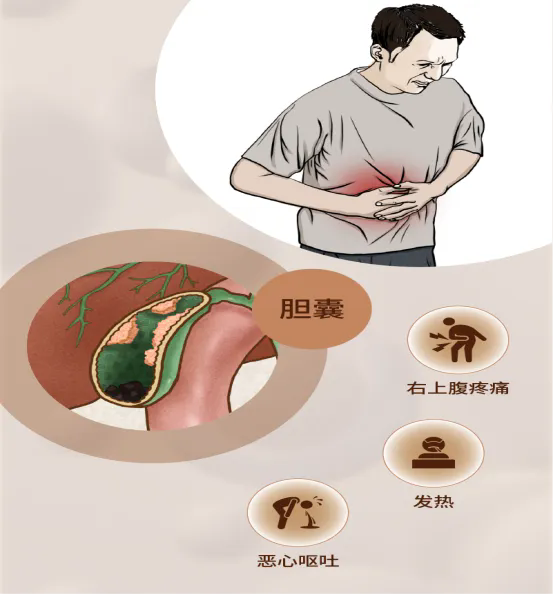 胆道炎症反应:右上腹持续性绞痛,可放射至右肩背,油腻饮食后加重,常伴38℃以上发热
