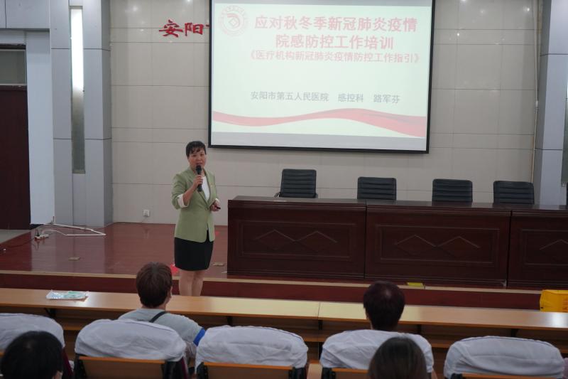为积极应对秋冬季可能出现的新冠肺炎疫情,8月17日,我院感控科在行政楼一楼学术报告厅进行应对秋冬季新冠肺炎疫情感控专题培训,本次培训分为两场,由感控科科长路军芬组织进行,保洁部、保卫科、生活垃圾清运和医疗废物转运人员共40余人参加。
