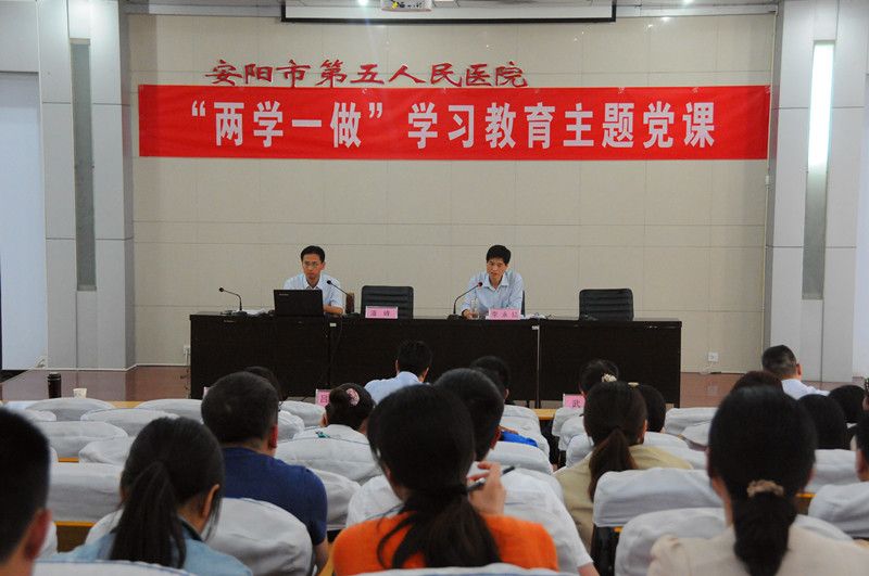 按照市卫计委关于开展“两学一做”学习教育工作方案的要求,我院于5月24日下午在医院学术报告厅开展了“两学一做”学习教育主题党课,特邀市委党校党史教研室潘峰主任作了专题讲座,我院党委书记李永红主持,全体班子成员、中层干部、医疗组长、全体党员150人聆听了讲座。