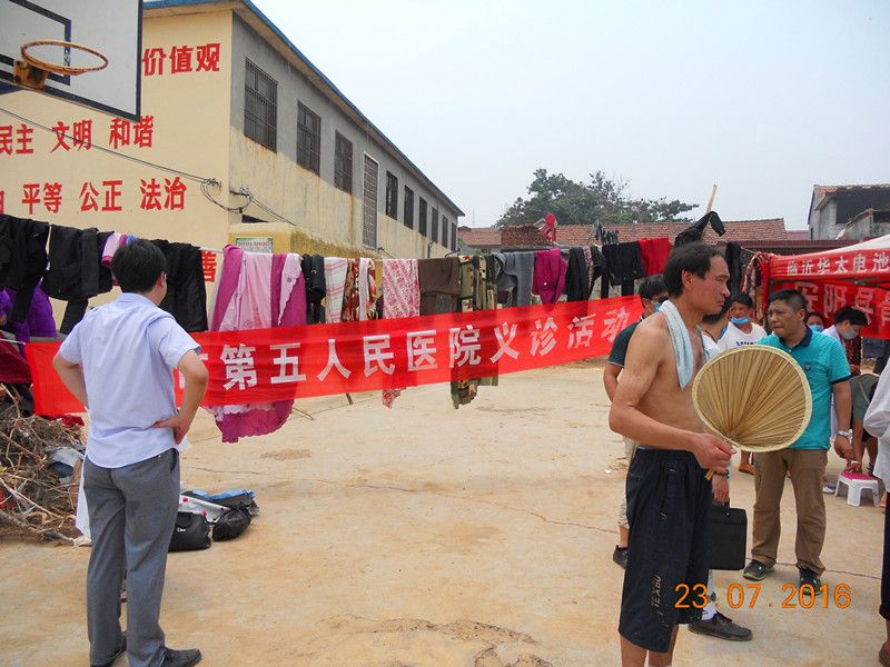 7月23日,我院医务人员与河南电视台新农村频道的记者、市卫计委戴东华科长、河南翔宇医疗设备有限责任公司领导、安阳龙都药业公司领导、安阳县第三人民医院医护人员等一行20余人到洪涝灾害严重的善应镇南平村义诊。医务人员冒着高温酷暑,踏着泥泞的道路,克服没有桌椅,以漏天泥泞的场地为义诊点等艰苦的义诊条件,医护人员为前来就诊的村民免费量血压、发放常用的消炎药和高血压药、包扎处理简单外伤,深入行动不便的病人家中诊治,为群众宣传讲解灾后常见传染病的防治知识和心理安慰,受到了广大群众的一致好评。