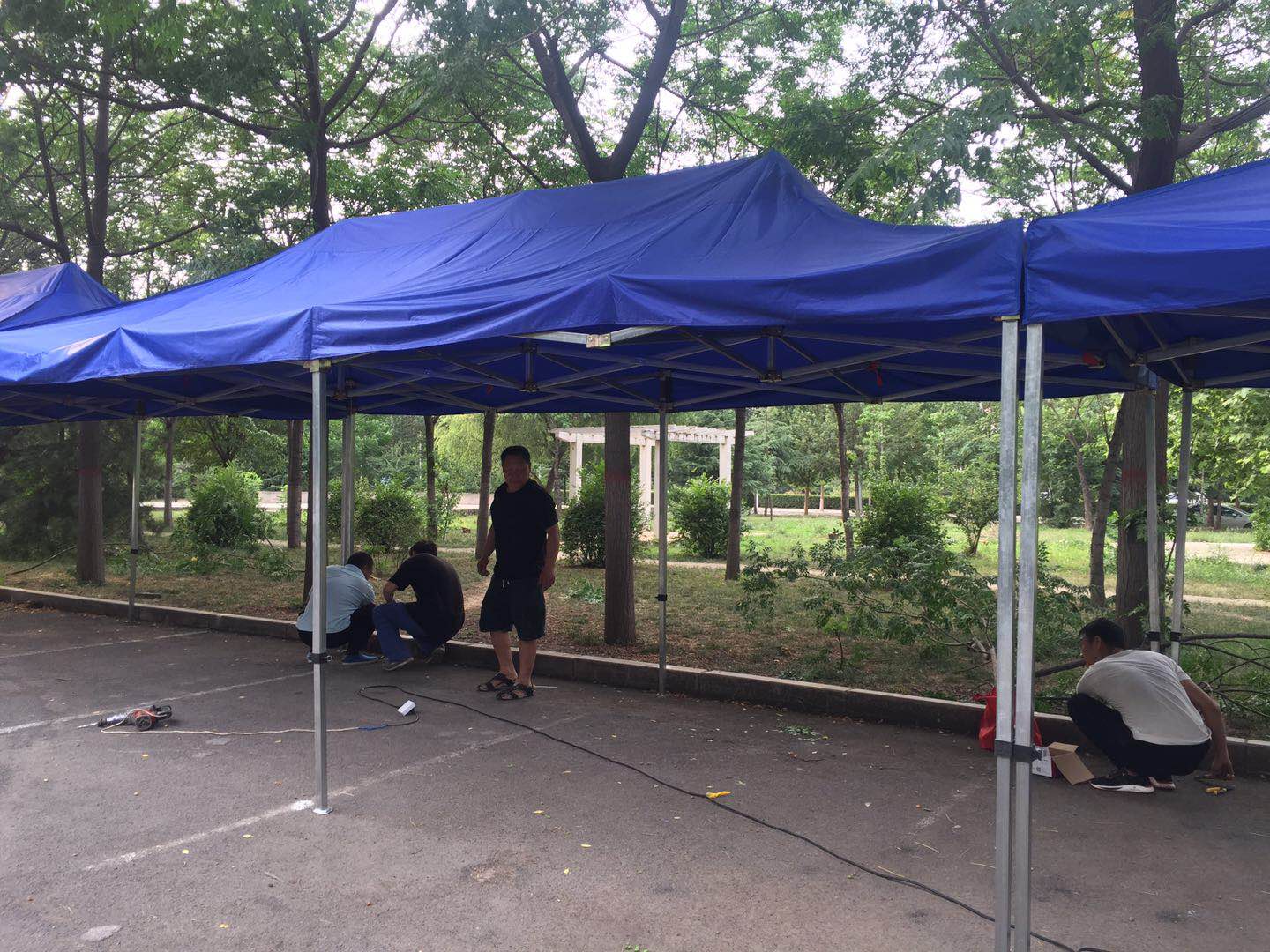 为避免车辆乱停乱放,影响我院创卫整体环境,总务科的各位师傅在我院二号病房楼北侧安装简易车棚!