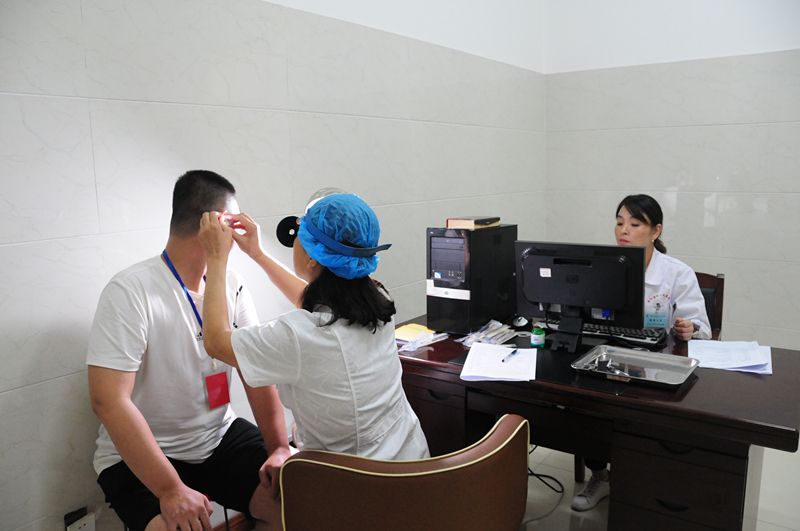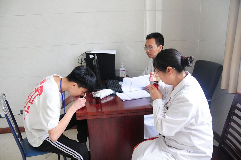 各科室医务人员在认真为应征青年进行身体检查