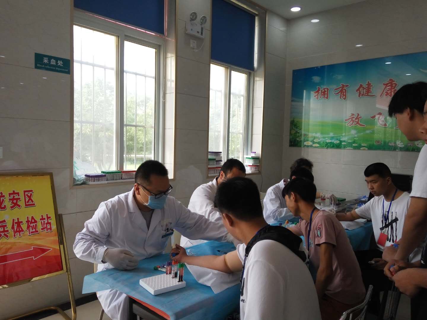 征兵体检工作进行中,应征青年在各引导员的带领下有序到各科室体检