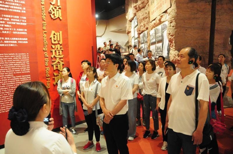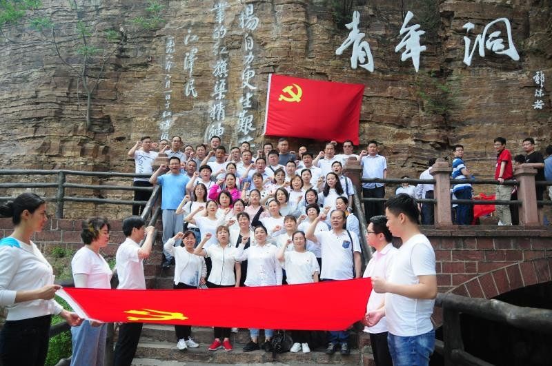 在红旗渠总干渠的咽喉工程-青年洞前,望着穿山而过的红旗渠渠水,全体党员同志们再次感受了当年共产党员吃苦在前、一心为民、公而忘私的英雄气魄。面对鲜红的党旗,全体党员纷纷举起右拳,庄严宣誓,重温入党誓词,激励自己时刻遵循党的宗旨,不忘初心,牢记使命,坚定为党的事业奋斗终身的信仰。