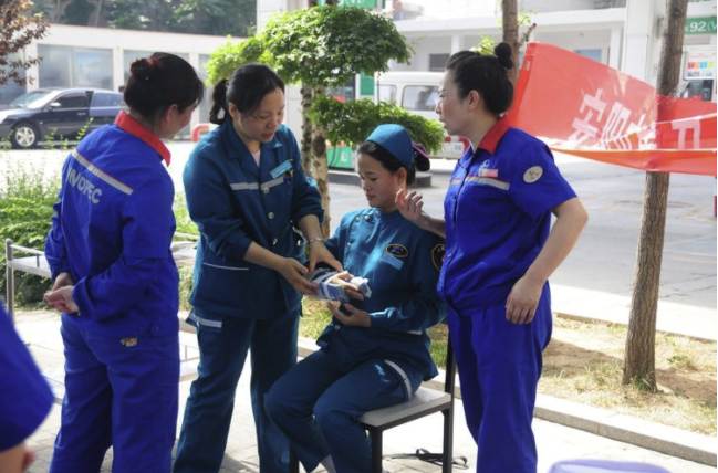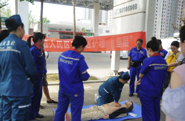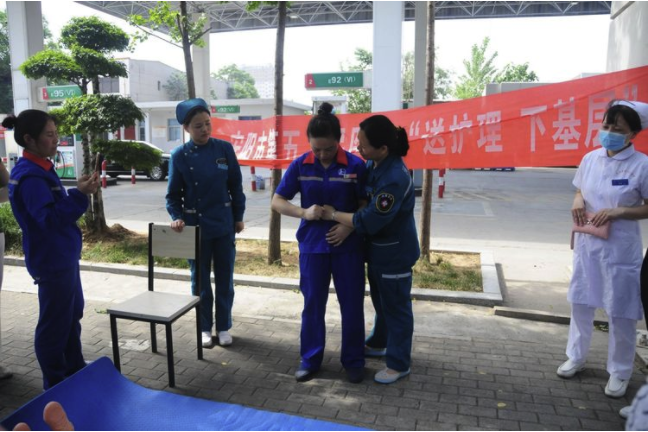 为了满足基层广大人民群众、一线企业职工的基本卫生服务需求,提高突发事故状态下的自救互救能力,努力营造“人人学急救,急救为人人”的良好社会氛围,6月3日上午,护理部带领急诊科医生冯淑杰、护士李云云等一行7人,走进中石化河南安阳分公司市区一站,开展“送护理 下基层”活动。