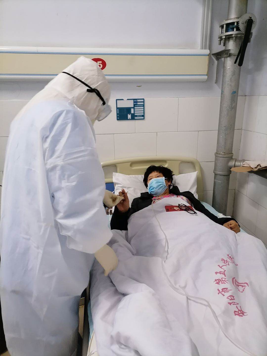 我到岗位后,立即投入到战斗中。为节省防护物品,上班之前不敢多喝水、尽量少吃东西,恐怕上厕所浪费掉一件防护服。记得一次夜班,几乎同时来了四名患者,我忙碌着给病人铺床、上心电监护、吸氧、量体温、抽血、取标本、扎留置针、输液、雾化……每天都是这样忙碌着,平常轻而易举的事情,但在穿上防护服、戴上护目镜、两层手套时操作却异常艰难。