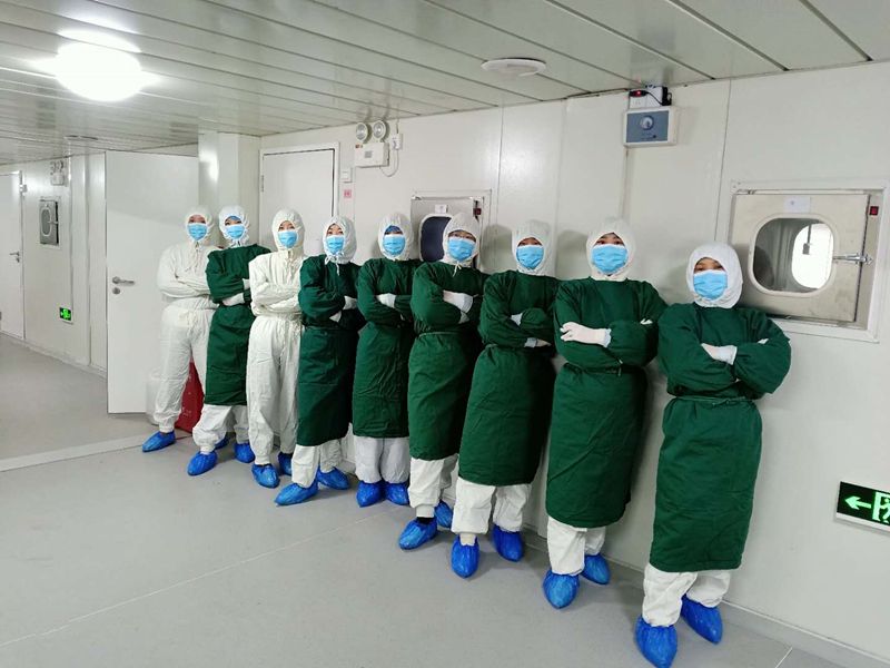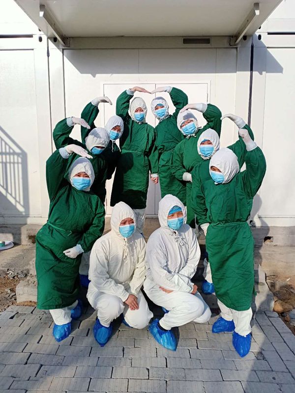 如果说到“小汤山”的护理主力军,不得不提到田雅琴、刘璐等这支“宝妈团队”,她们舍小家顾大家,积极投入抗疫一线工作,护师李晋华、张莹给予患者无微不至的照顾,李娟、王慧卉、李海燕等不怕苦和累,主动搞好优质护理服务和卫生清洁工作,病房里处处充满着患者的赞叹声。医护人员加班加点,任劳任怨,团结互助,精心诊治和护理好每一位患者是他们最大的心愿。