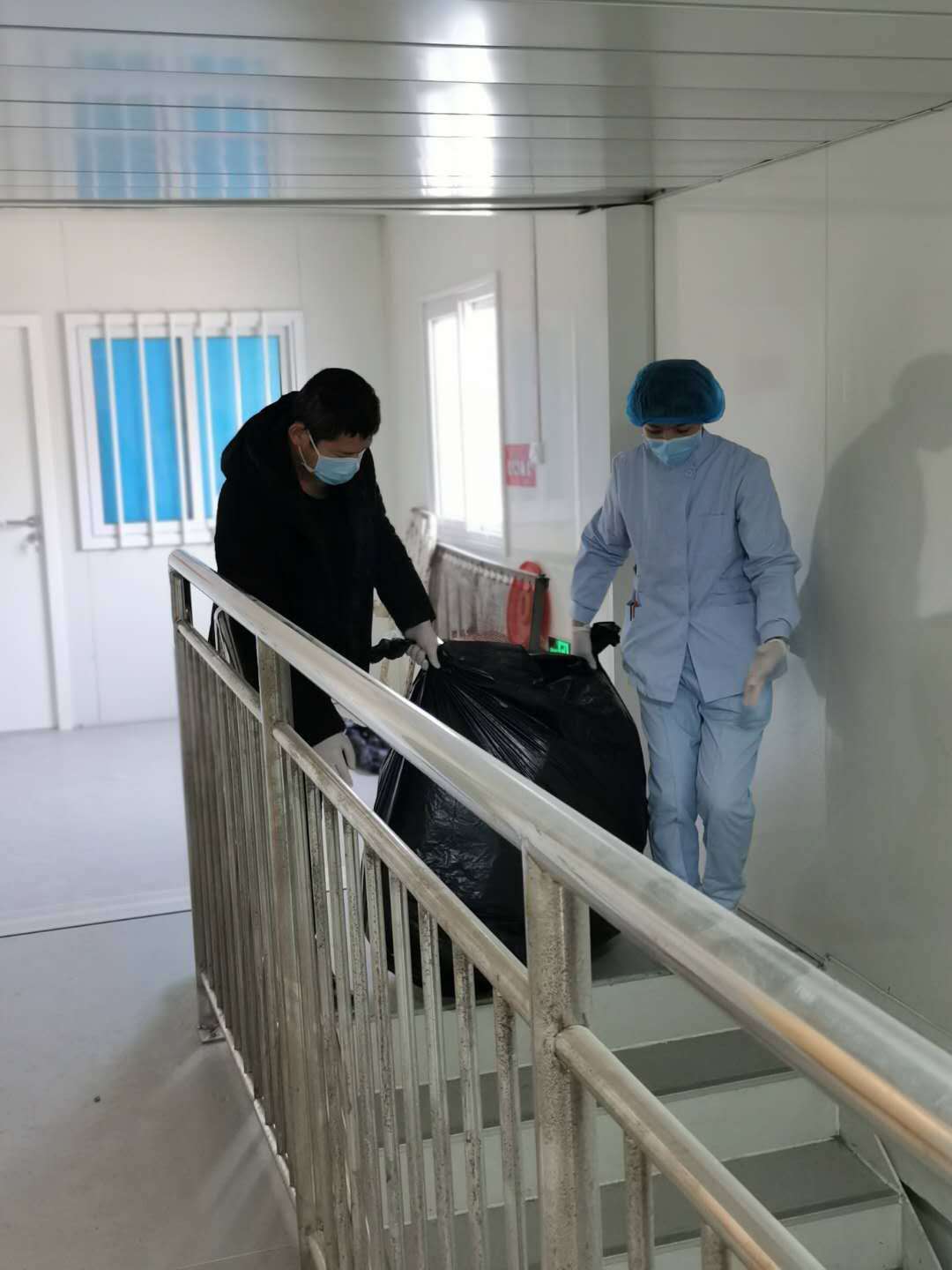 宋朝阳副主任带领原三病区医疗团队及所有病人整体移至“小汤山”一楼,张勇副主任医师带领原一病区医疗团队及患者整体移至“小汤山”二楼。在整体搬运过程中,医护人员齐心协力,携手互助,保障患者救治工作顺利开展。