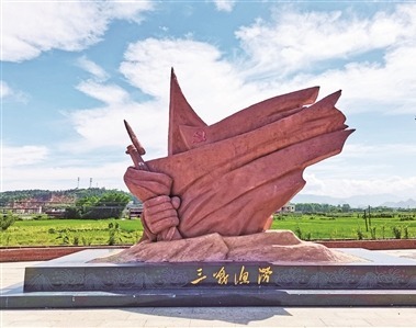 位于广东省肇庆市封开县渔涝镇的“三战渔涝”雕塑。资料照片
