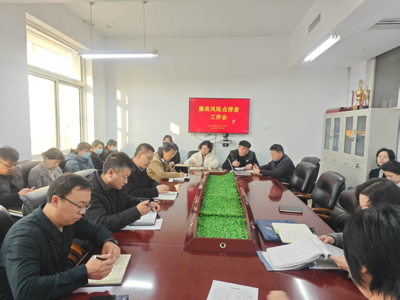 为深入管理落实全面从严治党工作要求,筑牢廉洁防线,2025年2月24日,我院召开廉洁风险点排查工作会,会议由纪委书记刘国芳主持,班子成员及行管各科负责人参加会议。